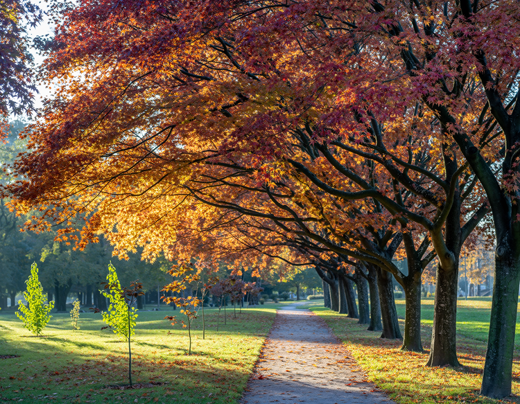 欲しかった紅葉の並木道の写真になりました!よく見ると木の形など歪な箇所があったりはしますが、全体の雰囲気は悪くありません。