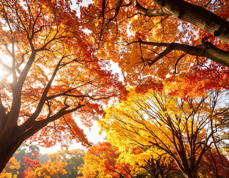 左は秋らしさが感じられる一枚です。右は地面から見上げた秋の雰囲気がある画像です。