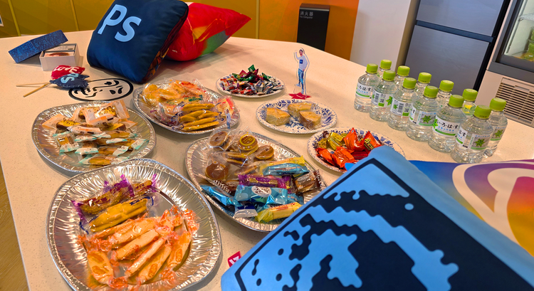 参加者を出迎えるPhotoshopグッズとお菓子が並ぶ“ウェルカムテーブル”