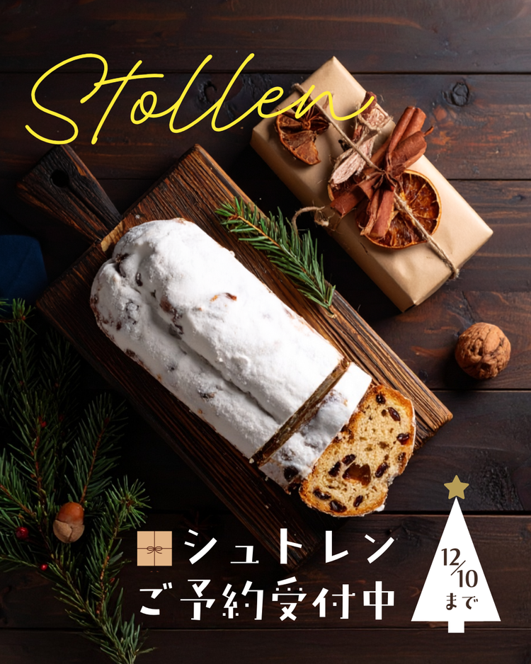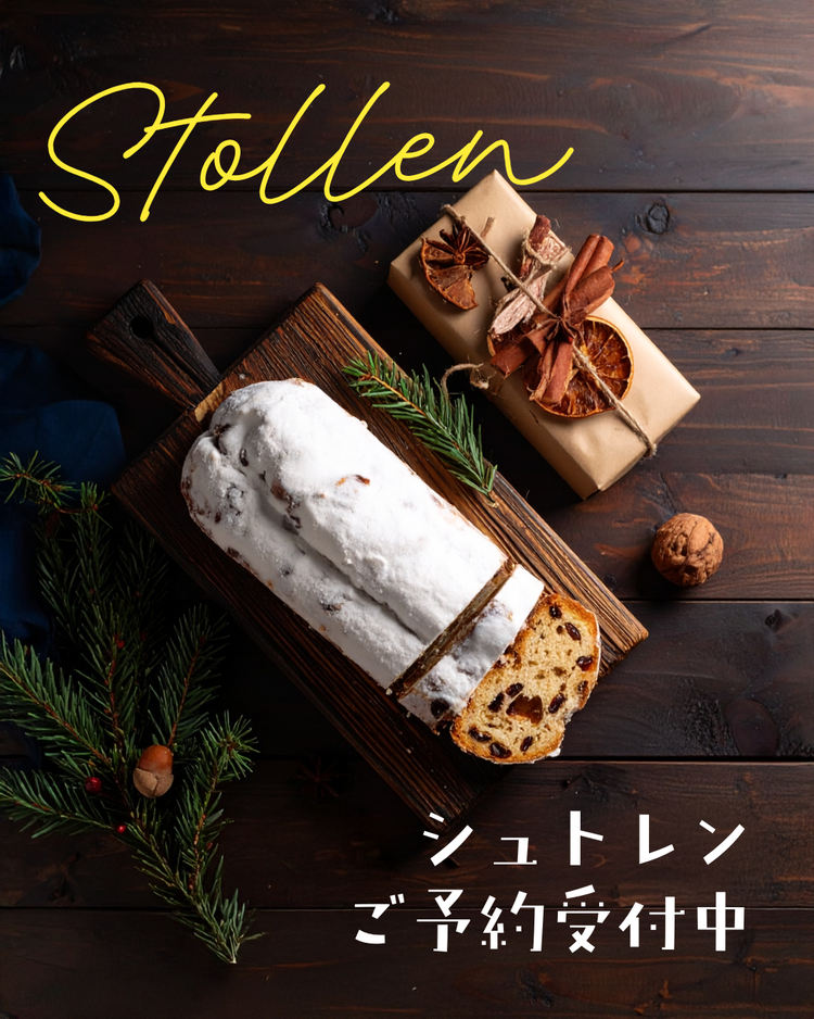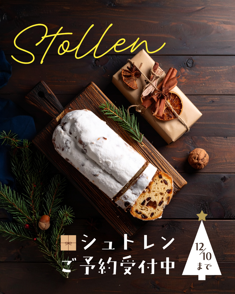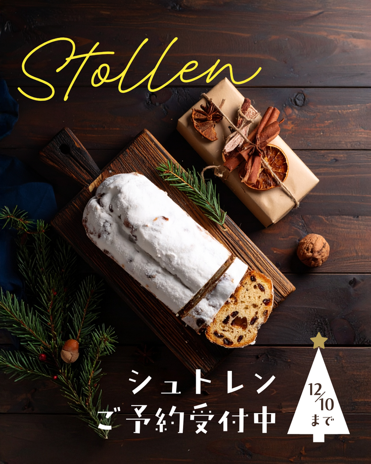 下には、親しみやすさを感じる書体で「シュトレンご予約受付中」を追加します。