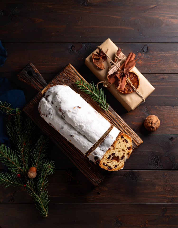 早速、プロンプト「シュトーレン」を Firefly Image 5 (プレビュー) に入力して生成してみましょう。縦横比には、縦(3:4)を指定します。すると、美味しそうなシュトーレンが生成されました。