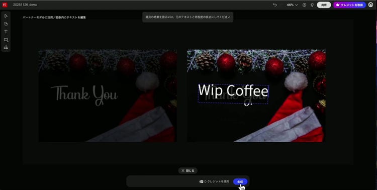 下の画像は新しいテキストをタイプしたところです。生成ボタンをクリックすると、AI が元のフォントに似た特徴を持つ文字を生成してくれます。