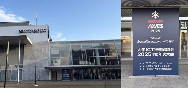2025年12月1日から3日まで、札幌コンベンションセンターで大学ICT推進協議会(以下、AXIES)の年次大会が開催されました。AXIESは、ICTを利活用した教育・研究・経営の高度化を図り、日本の教育・学術研究・文化や産業の発展に寄与することを目指している協議会で、毎年12月に年次大会が行われます。北海道大学を幹事校として開催された今回の年次大会には、3日間で延べ4,500人を超える来場者が集まり、最新の取り組みや直面する課題について、さまざまな視点からの情報交換が行われました。