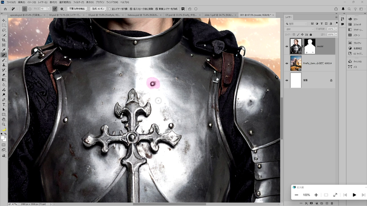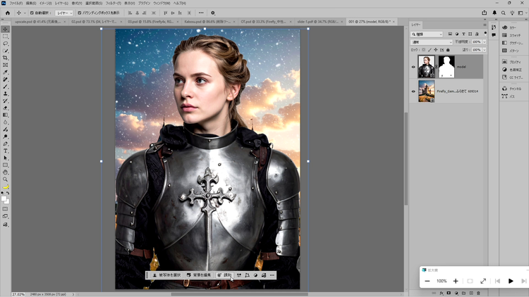 制作物のアイデアが固まって必要な素材が揃ったら、いよいよ Photoshop で合成とレタッチを始めます。