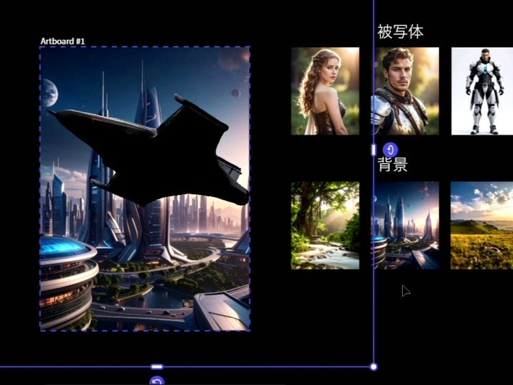 合成に使いたい画像が上空を飛び去る宇宙船であれば、下からの角度で描かれたものでなければなりません。「画像を 3D に変換」を使えば、角度を気にせず素材を選び、それを回転することで必要な素材が手に入ります。条件に合う素材が見つかるまで探し続ける手間を省けます。