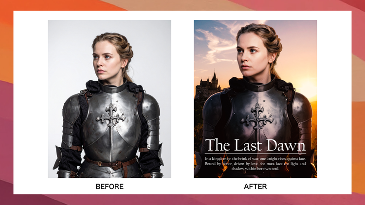 画像を合成する際、被写体と背景のトーンや光の向きを合わせて整合性を取るのは難易度が高く手間のかかる作業です。そんな時 Photoshop の「調和」を使うと、生成 AI が背景画像の光源を読み取り、シーンに馴染むよう被写体を調整してくれます。下の画像は「調和」の使用前と使用後です。
