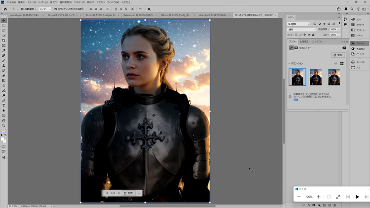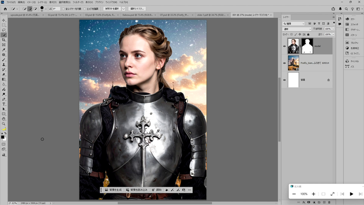 Adobe Photoshop に様々な生成 AI 機能が搭載されて、熟練したスキルが無ければ難しかった作業が以前より身近なものになりました。デザインツールの初心者も、生成 AI の助けを借りながらレタッチや合成をしてコラージュを楽しめる時代です。
