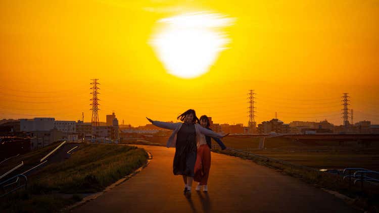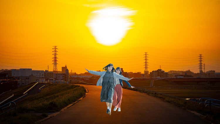 逆光のパターンです。ちゃんと太陽の位置を把握して、人物の服や髪の毛まで暗くした上に、足元には長い影がつきました。