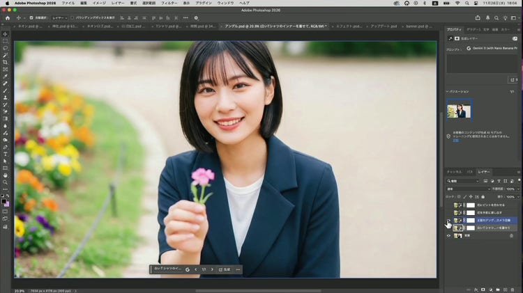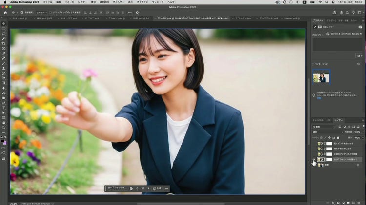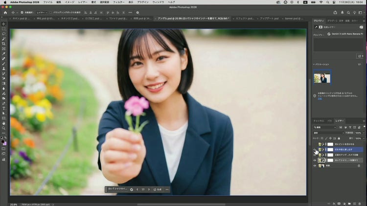Photoshop 2026 から「生成塗りつぶし」にパートナーモデルを利用できるようになりました。目的に応じた最適なモデルを選択できるため、「生成塗りつぶし」をこれまでとは違う目的に利用できます。