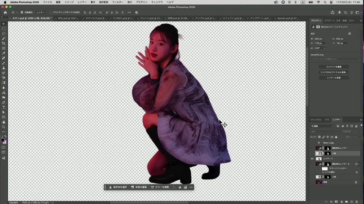 Adobe Photoshop 2026 の新機能「調和」と、アップデートされた「生成塗りつぶし」は、どちらもデザイン制作を強力に支援してくれる生成 AI 機能です。画像制作における手間のかかる作業を、クリック操作やプロンプトだけで高精度かつ短時間で仕上げてくれます。