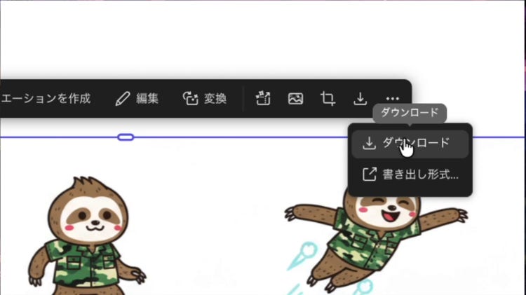 Firefly ボードで生成した素材は、「ダウンロード」アイコンをクリックしてローカルに保存すれば Illustrator に読み込んで使用できます。画像であれば、「PNG としてコピー」を使って Illustrator にペーストすることもできます。