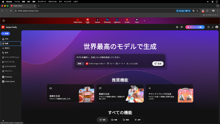 Firefly を利用するには生成クレジットが必要です。現在お持ちの生成クレジットを確認する方法は、こちらをご覧ください。