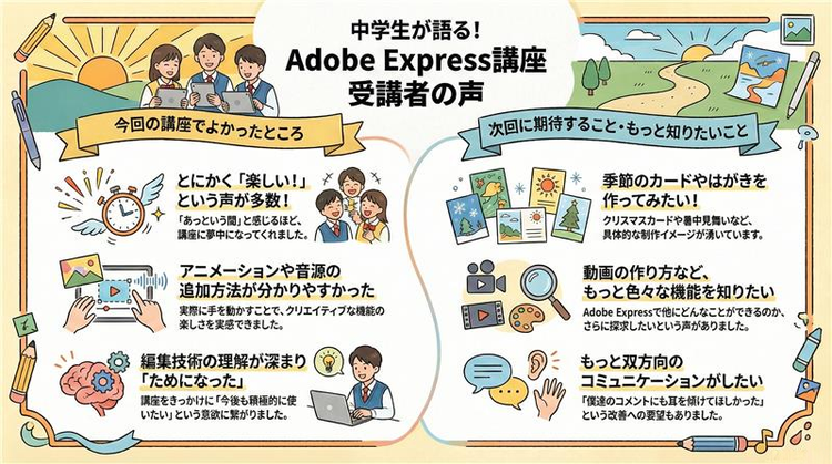 Adobe Expressによって、子どもたちのクリエイティビティやデジタルリテラシーが育まれることを期待