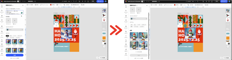 参加した中学生には、アドビサンタからのプレゼントとして、クリスマスカード・年賀状 制作ステップガイド」がAdobe ExpressのWebページにまとめた状態で、リンクが提供されました。「友達や家族に作って渡してみてもらえたら嬉しいです!」という渡邉のメッセージで、短い時間ながらも盛りだくさんの内容の講座は終了しました。