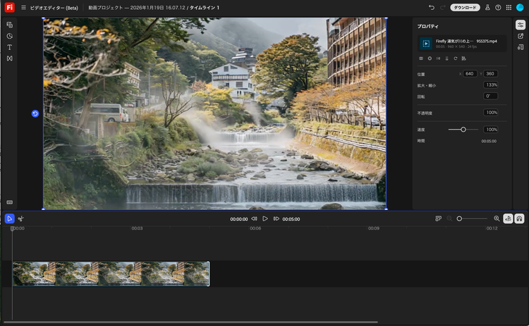 寒い冬に温泉で体の芯から温まりたいと思ったことはありませんか?今回は、そんな人たちの背中を押して温泉街に誘う動画バナーを Adobe Firefly の生成 AI 機能を活用して制作します。ブラウザーだけでつくれる手順です。