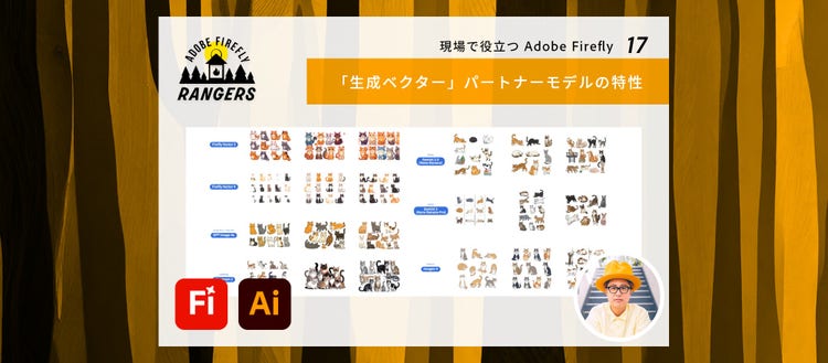 本連載では、デザインの現場ですぐに役立つ Adobe Firefly の活用術をお届けします。第 17 回は、Adobe Illustrator で利用できるパートナーモデルの特性を比較しながら、生成 AI 機能を使用する際にパートナーモデルを使いこなすヒントを探ります。