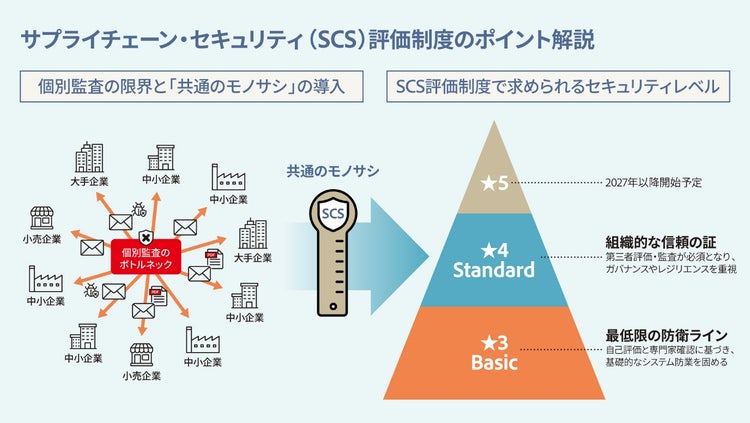 - 新制度の登場: 経済産業省が「サプライチェーン強化に向けたセキュリティ対策評価制度(SCS評価制度)」を策定。
