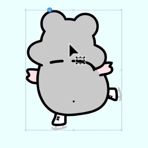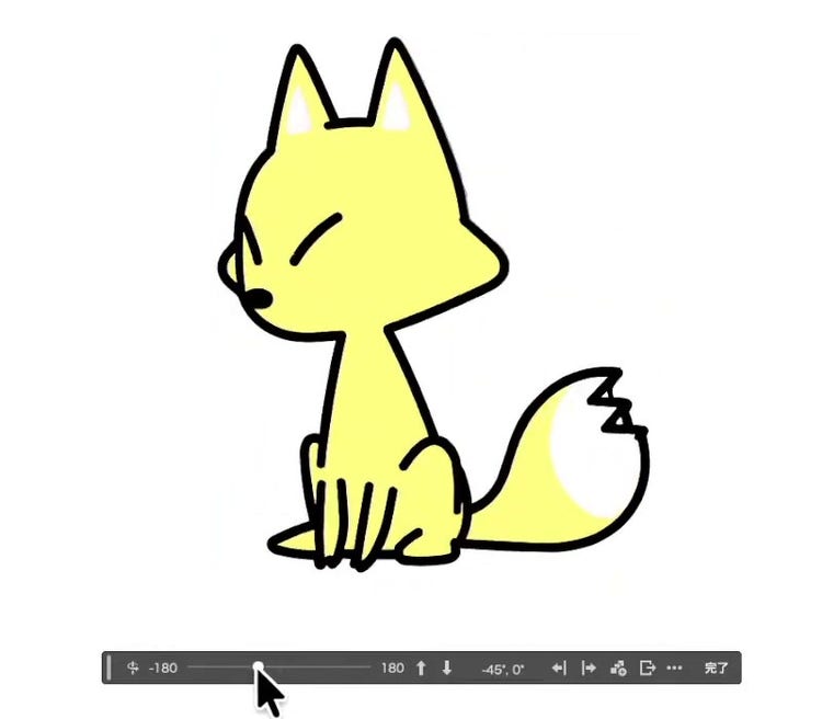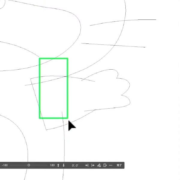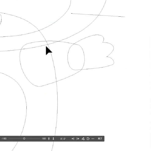 回転させたときに、意図せぬ余計な線や塗りが生成される場合があります。オープンパスを閉じることで、そうした状態が改善されることがあるようです。下の例では、オープンパスがある状態で回転させたところ、お尻のあたりに余分なシミができました。
