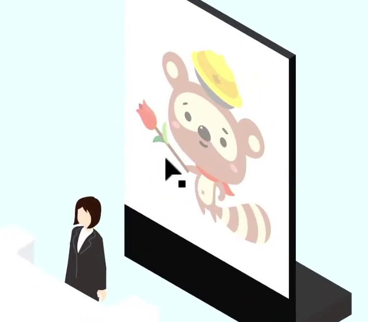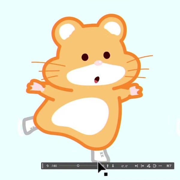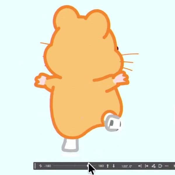2D オブジェクトであっても、平面的な描写ではなくて、立体であることを意識して描かれたイラストの方が、良い結果を得られやすいようです。たとえば、下の例では左の画像を回転させたところ、背中を向けたら(右の画像)手足の位置が少し不自然になってしまいました。