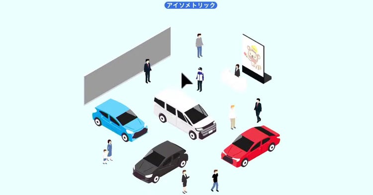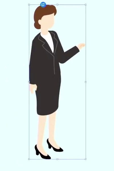 アイソメトリックデザインは、斜め上からの視点で遠近法を用いず対象物を立体的に描きます。これは「ターンテーブル」との相性がよい表現手法で、オブジェクトをきれいに回すことができます。下の例では、女性のイラストを回転しています。脚部を拡大してもきれいに回っていることが分かります。