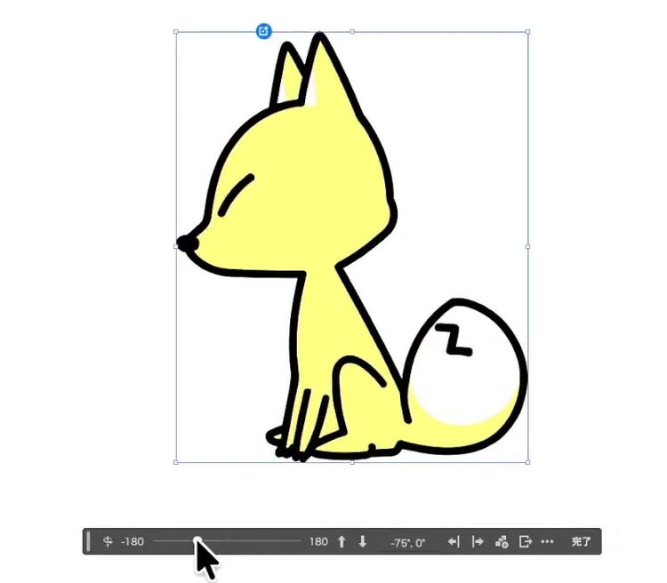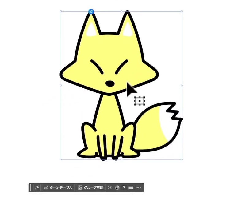 「ターンテーブル」はその名の通り 2D オブジェクトを様々な角度に回転できるようにしてくれる機能です。使い方は簡単で、オブジェクトを選択してから、コンテキストタスクバーの「ターンテーブル」をクリックします。