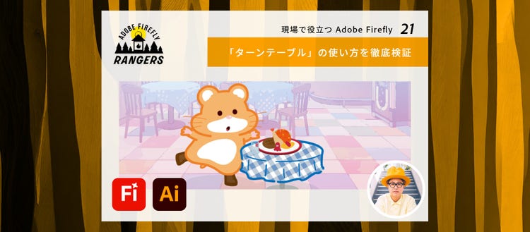 本連載では、デザインの現場ですぐに役立つ Adobe Firefly の活用術をお届けします。第 21 回は、Adobe Illustrator の新機能「ターンテーブル」の基本機能と使いこなすためのヒントをご紹介します。