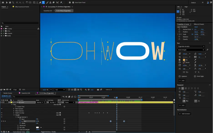 애프터 이펙트의 모션 타이포그래피가 한층 더 강력해졌습니다. 텍스트 애니메이터(Text Animator) 시스템을 통해 가변 글꼴이 제공하는 모든 축을, 키프레임과 표현식을 활용해 레이어당 최대 8개의 축까지 애니메이션을 적용할 수 있습니다.