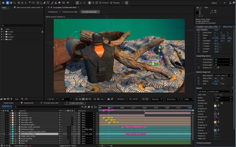 이제 네이티브 파라메트릭 망과 외부에서 불러온 모델 모두에 서브스턴스 3D 재질(Substance 3D materials)을 적용해, 몇 번의 클릭만으로 스타일과 현실감을 더할 수 있습니다. 이러한 재질은 동적으로 반응하며 자유롭게 커스터마이징할 수 있어 원하는 표현에 맞게 세밀하게 조정할 수 있습니다. 애프터 이펙트에서는 서브스턴스 커뮤니티 에셋을 통해 수천 개의 재질을 이용할 수 있으며 이 중 1,300개 이상은 모든 사용자가 무료로 사용할 수 있습니다. 오프셋, 회전, 반복 제어 기능을 활용한 정교한 작업으로 원하는 모습을 완성하고 재질의 모든 속성에 애니메이션을 적용해 생동감 있는 표현을 구현할 수 있습니다.