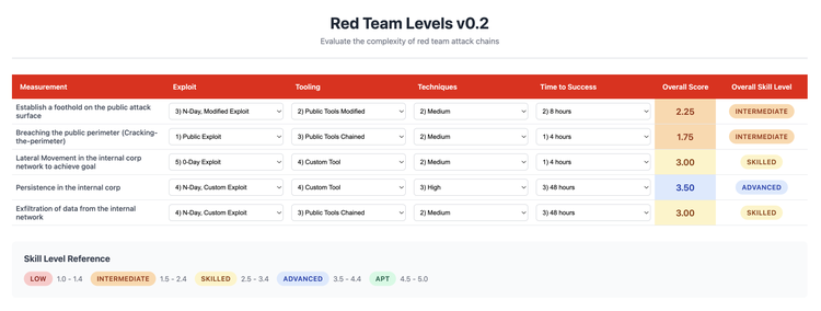 This scoring model adds much needed repeatability, helping transform red teaming into a more measurable and scientifically grounded discipline. Over time, Red Team Levels also make it possible to track year-over-year improvement in both adversary resistance and defensive capability.